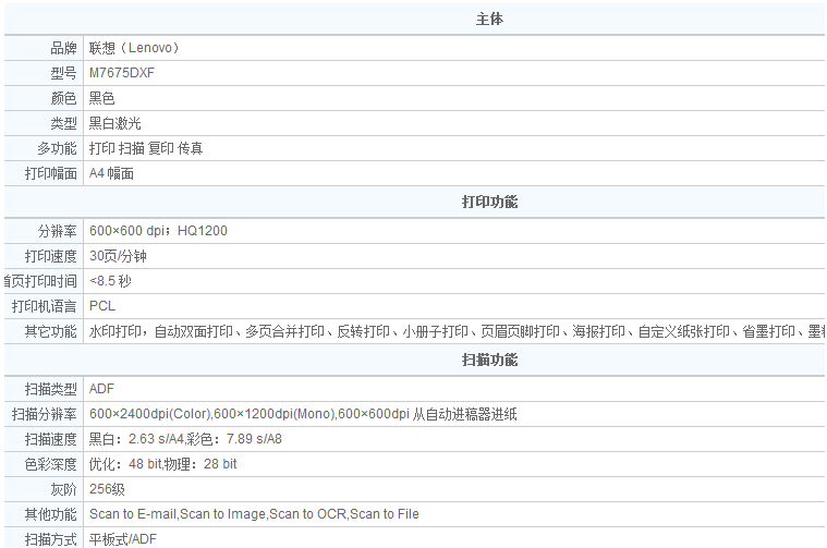 联想 M7650DNF 黑白激光多功能一体机(打印 复印 传真 扫描)
