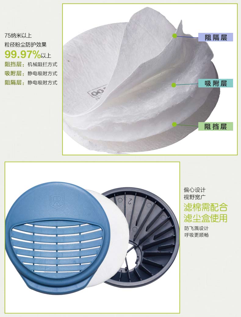 宝顺安防尘口罩专业呼吸防护面具滤棉kN100粉尘煤矿工业打磨 3201滤棉一