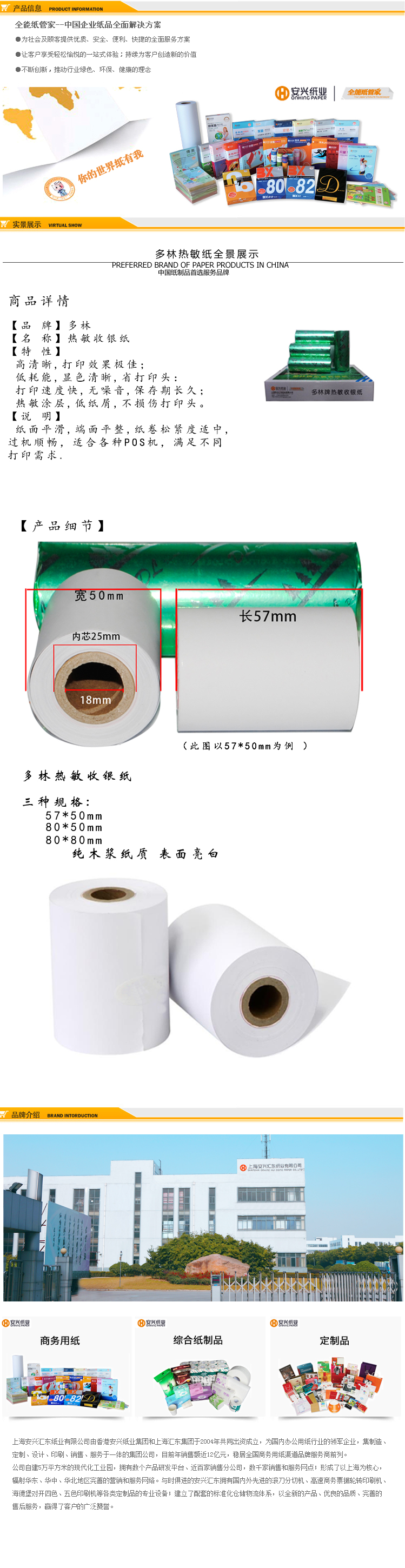 多林 57*50 热敏收银纸 120卷/箱 白色
